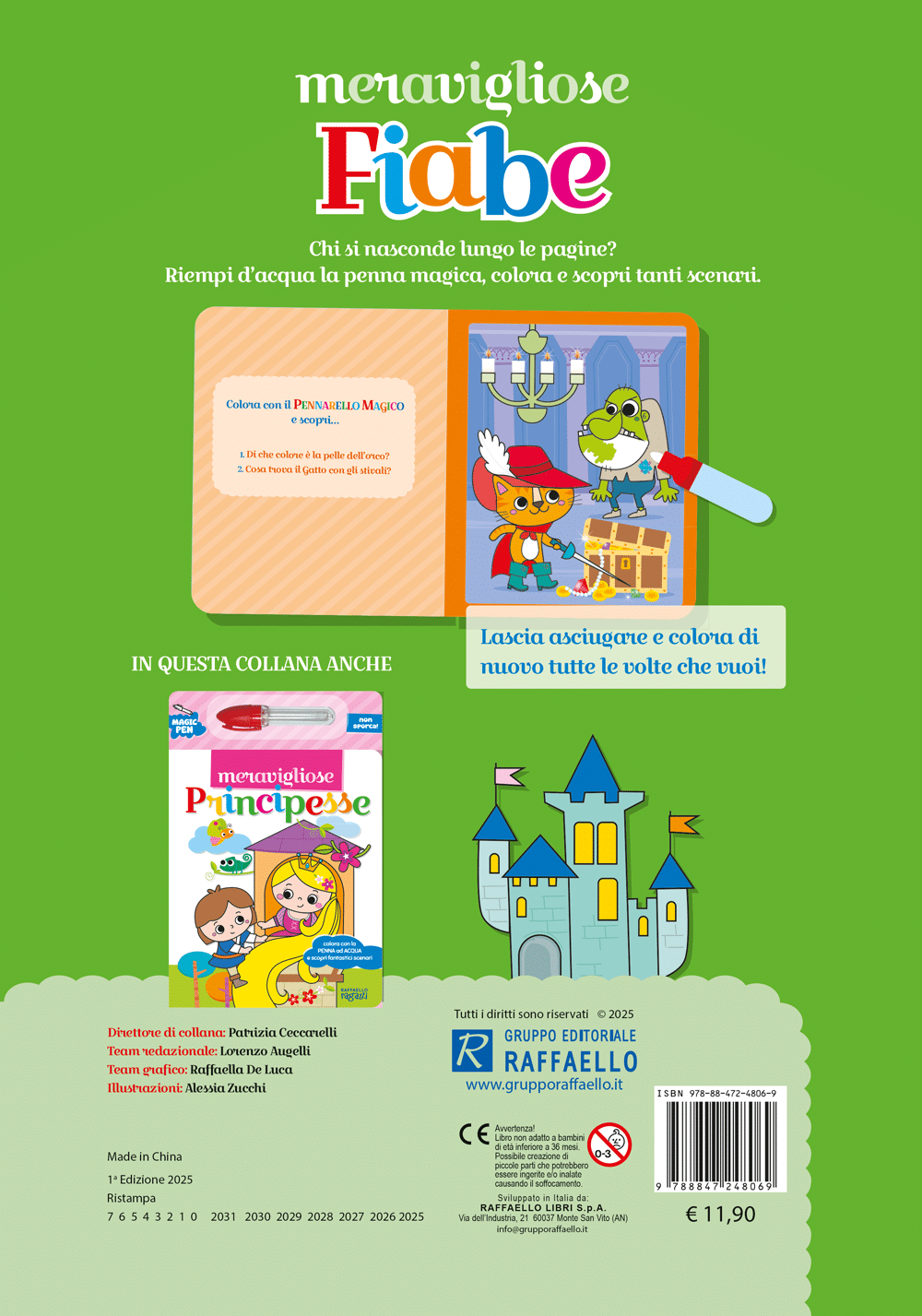 Chi si nasconde lungo le pagine? Riempi d’acqua la penna magica, colora e scopri fantastici scenari con uno speciale pennarello magico.