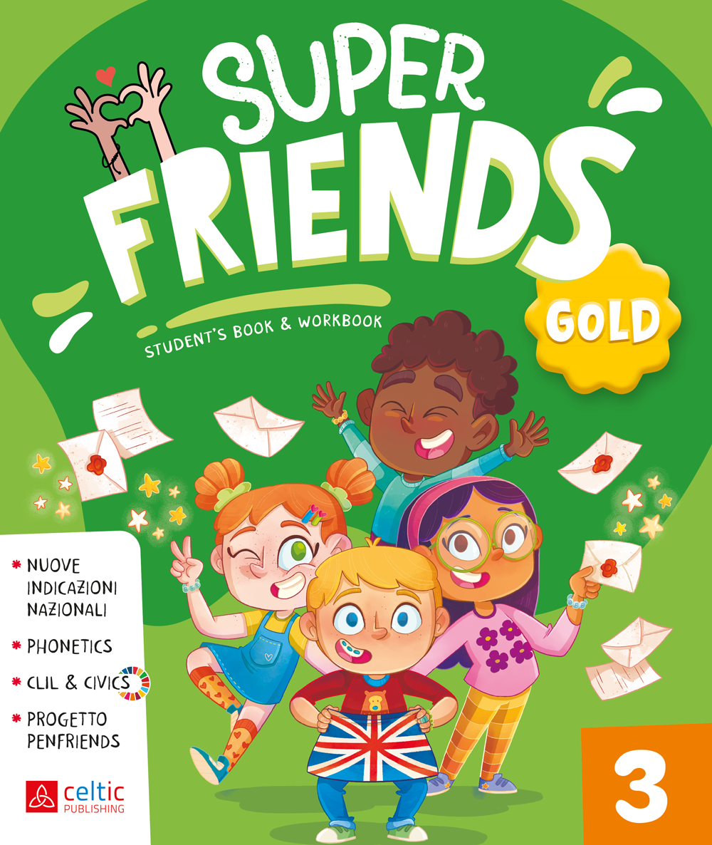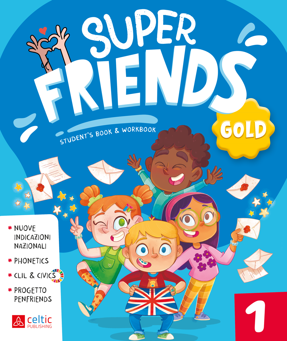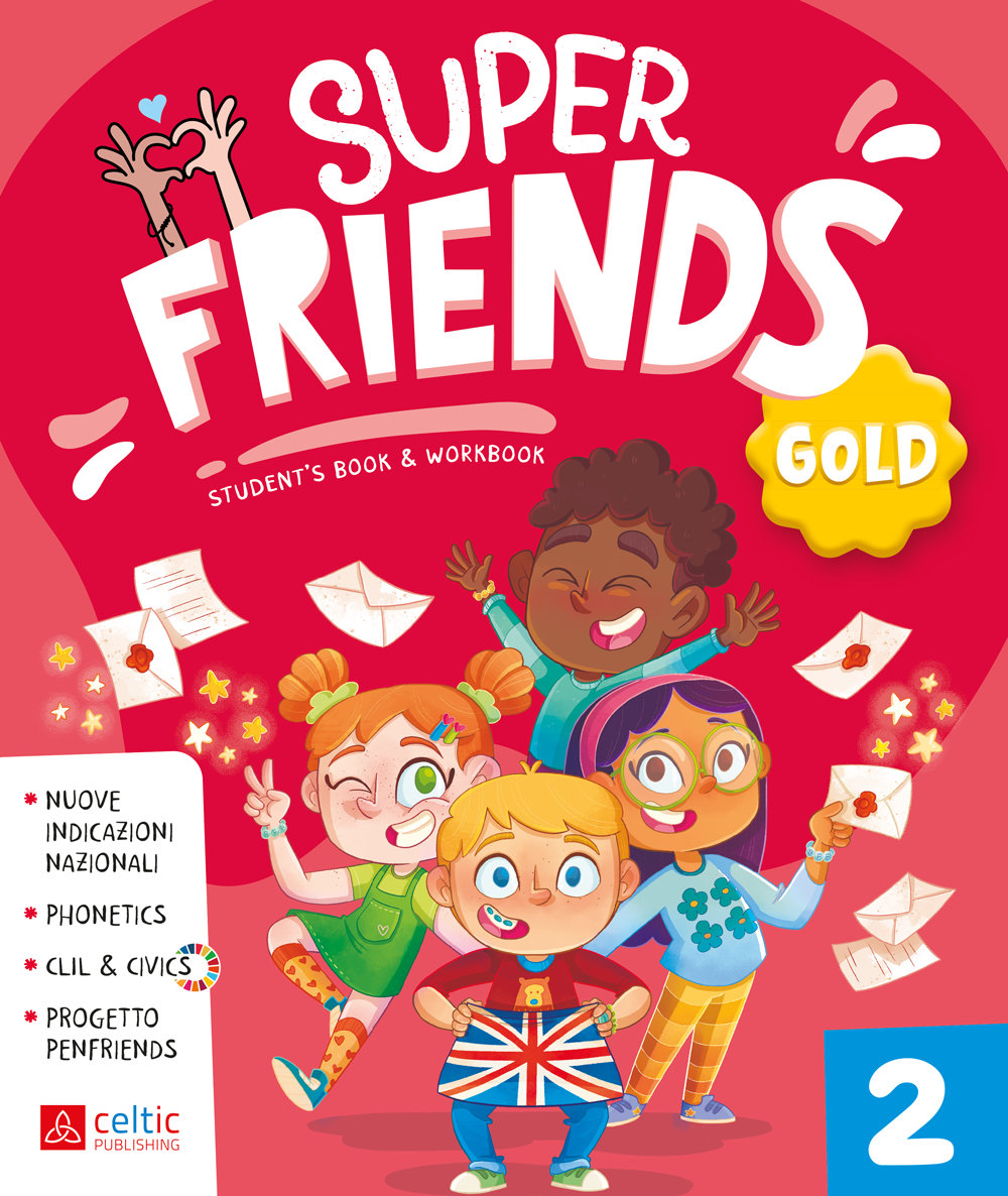 Filo conduttore del corso è l’amicizia, tema importante per la crescita emotiva e intellettiva di bambini e bambine: amicizia che nasce tra compagni di scuola e a distanza tra penfriends, gli amici di penna. È intorno all’amicizia e all’inclusione che vengono sviluppate storie dove i personaggi incontrano nuovi amici e conoscono nuove realtà. Nelle sezioni ‘You and Me Super Friends’ di ogni unità vengono praticate le strutture e il lessico appresi applicandoli al registro epistolare, imparando così a scrivere lettere da inviare agli amici che usano lo stesso testo e a fare rete tra classi con progetti da condividere. Per questo, a disposizione della classe, la Letter box e una pagina fb dedicata alle docenti: un’utile bacheca di scambio opinioni e indirizzi per intraprendere la corrispondenza tra bambini di scuole diverse. Particolare enfasi viene dunque posta sull’inclusione e sui valori che portano a una positiva convivenza civile quali l’accettazione di sé e dell’altro e la condivisione (Social Emotional Learning), temi trattati anche nella sezione Civics, dedicata all’Educazione Civica e presente in tutti i volumi. Inoltre, nel libro di testo, le attività sulle 4 abilità, le canzoni, i giochi linguistici, gli approfondimenti culturali e grammaticali rendono il testo completo, dinamico e motivante.